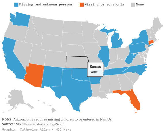 There is no nationwide mandate to use NamUs. Adoption of it by coroners and medical examiners is slow, despite a consistent campaign of information and presentations. It’s a hodge-podge of state adoptions: